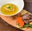 V večji lonec damo goveje meso s kostmi in jih prevremo ter poberemo peno. Nato dodamo vse sestavine razen jušnih rezancev, zalijemo do konca z vodo ter rahlo vremo. Ne smete pustiti, da juha močno vre, saj bo postala motna. ...