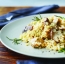 V ponvi raztopimo polovico masla. Čebulo nasekljamo in jo podušimo na maslu. Dodamo riž in ga za nekaj minut popražimo, nato pa prilijemo toliko piva, da je riž prelit z njim in se počasi kuha. Občasno prilijemo še nekaj juhe. Pripravimo gobe ...