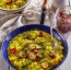 Na segretem olju pražite na drobno sesekljano šalotko, da postane zlatorjave barve. Nato dodajte riž in skupaj pražite še minuto. Prilijte vino in mešajte, dokler ne zavre. Nato zmanjšajte ogenj in riž kuhajte, dokler se ne zmehča. Postopoma ...