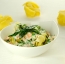 Za široke rezance s čemažem in dimljenim lososom olupimo šalotko in jo narežemo na majhne kocke. Lososa in čemaž narežemo na trakove, mlado čebulo pa na obročke. ...