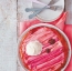 Potrebujemo veliko težko ognjevarno ponev (najbolje premera 22 cm) ali model za pite z ravnim (ne nažlebljenim) obodom. Ponev ali model vzamemo za mero in očiščena stebla rabarbare narežemo na dolge kose – daljši kosi so videti lepše kot kratki. ...