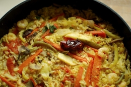 Dodamo bučke in papriko ter dušimo dobrih 5 minut. V ponev stresemo še drobno narezan paradižnik, začinimo s sladko papriko in dušimo toliko časa, da izpari vsa tekočina. Prilijemo jajca in na močnem ognju pražimo, da jajca zakrknejo. Takoj postrežemo.