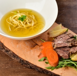 Ko je juha kuhana, jo umirite in postrežete z rezanci. Alma jo zelo rada servira z zelenjavo, ki smo jo vzeli prej ven, poleg pa nareže še meso iz juhe.