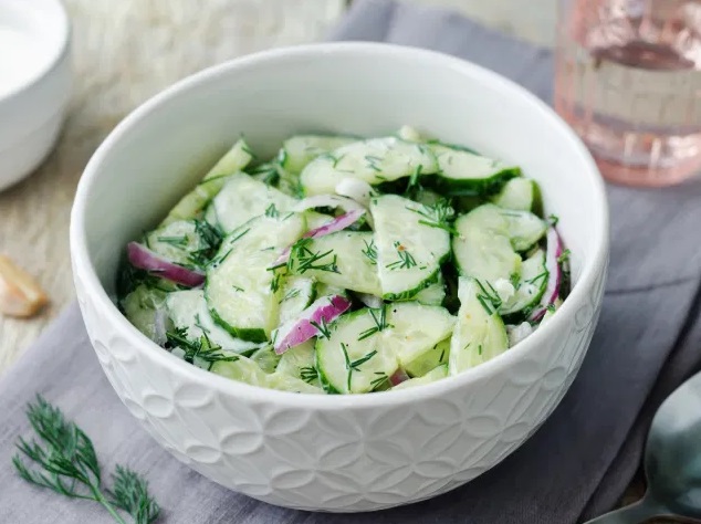 Krompir dobro sperite, nato ga skuhajte v slani vodi. Ko je skuhan, ga olupite še vročega, nato pa počakajte, da se malo ohladi. Zatem ga narežite na rezine. Kumaro operite in jo neolupljeno narežite na tanke rezine, ki jih rahlo osolite in pustite, da spustijo sok.