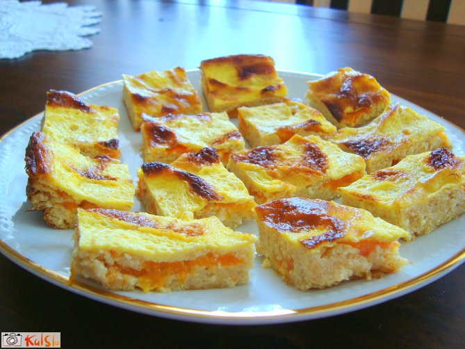 Osnovno zmes premešamo z ročnim mešalcem in jo prelijemo v pomaščen in nekoliko pomokan pekač (ca. 26 cm).