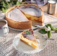 S pripravljeno maso napolnite tortni model in torto postavite v hladilnik za tri ure. V ponvi karamelizirajte preostali sladkor. Karamel prelijte po torti. Po želji okrasite s sadjem.