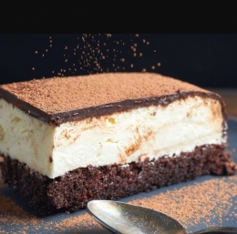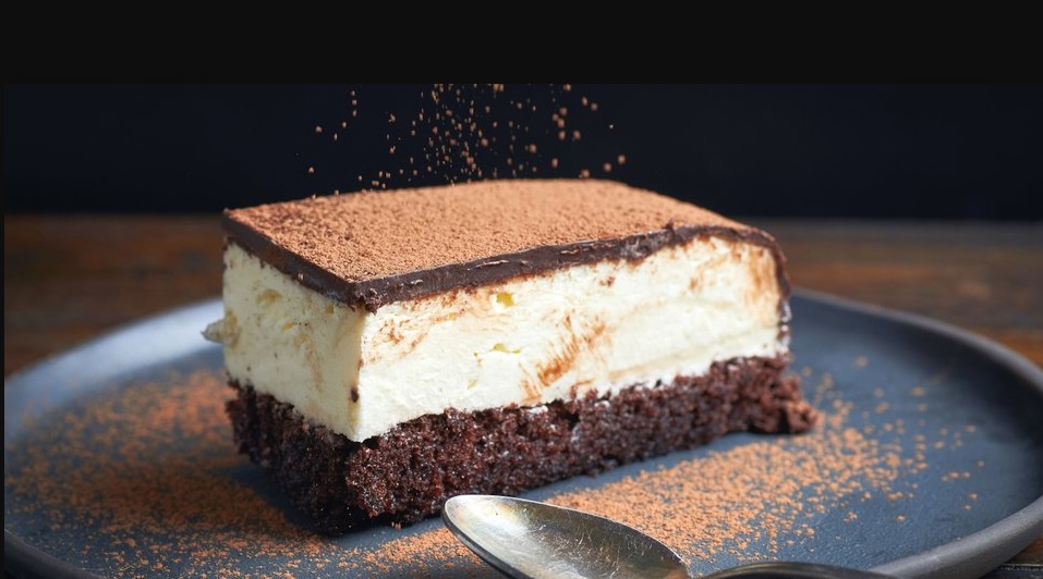 Preden pecivo narežemo na kose, ga dobro ohladimo. Vsaj za 4 ure ga shranimo v hladilnik, najbolje je, da tam počiva kar čez noč. Če želimo, lahko po vrhu potrosimo tudi malo kakava v prahu.