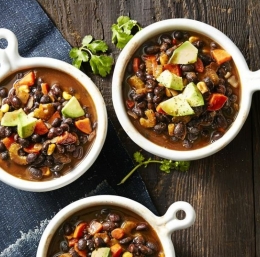 Celotno juho prestavimo v slow cooler in dodamo fižol, koruzo in preostanek jušne osnove. Pokrijemo in kuhamo med štiri in šest ur, odvisno ali izberemo hitro ali počasno nastavitev. Postrežemo s koščki avokada in koriandra.