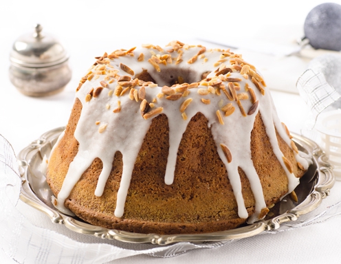 375 g masla (sobne temperature), 375 g finega sladkorja, 6 jajc, 1 strok vanilije (sredica), 1 zavitek vanilijevega sladkorja, 125 g grenke čokolade (fino naribana), 125 ml kuhanega vina, 375 g moke, 1 zavitek pecilnega praša, 2 žlici koruznega škroba.