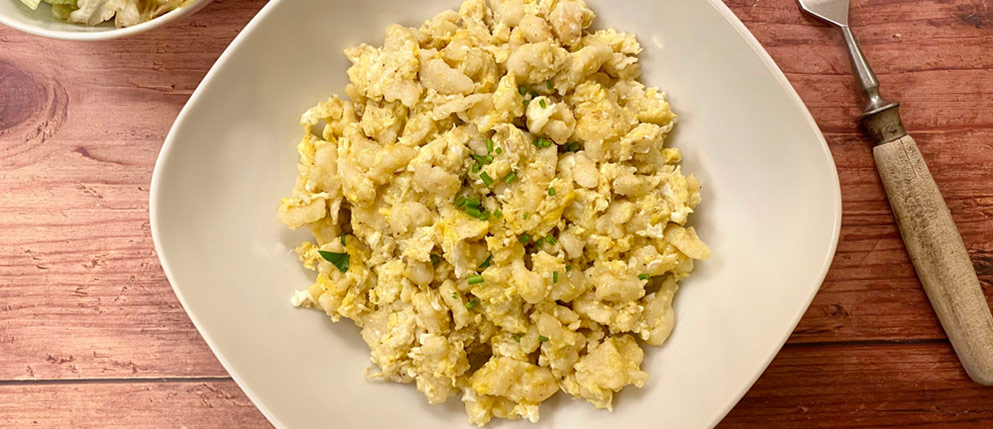 Cmoki z jajcem so odlična jed za malico. Po želji jim lahko dodamo prepraženo spomladansko čebulo.