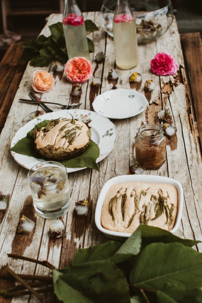 4 jajca 50 g sladkorja 1 vaniljev sladkor ščep soli 25 g jedilne sode 200 g moke 0,5 dl vode 1 dl olja vršički japonskega dresnika