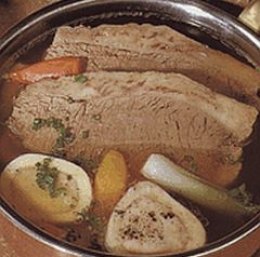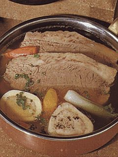 Goveje meso (če tega nimamo, lahko uporabimo tudi ovčetino ali svinjino, a se ta peče dlje časa) narežemo na drobne koščke in jih namočimo v marinado, ki smo jo pripravili iz sojine omake, hoisinove omake, vina in česna. Mariniramo najmanj eno uro. V posodi na visoko temperaturo segrejemo olje. Ko je vroče, a se še ne kadi, dodamo govedino in pečemo dve minuti. Vmes ves čas mežamo.