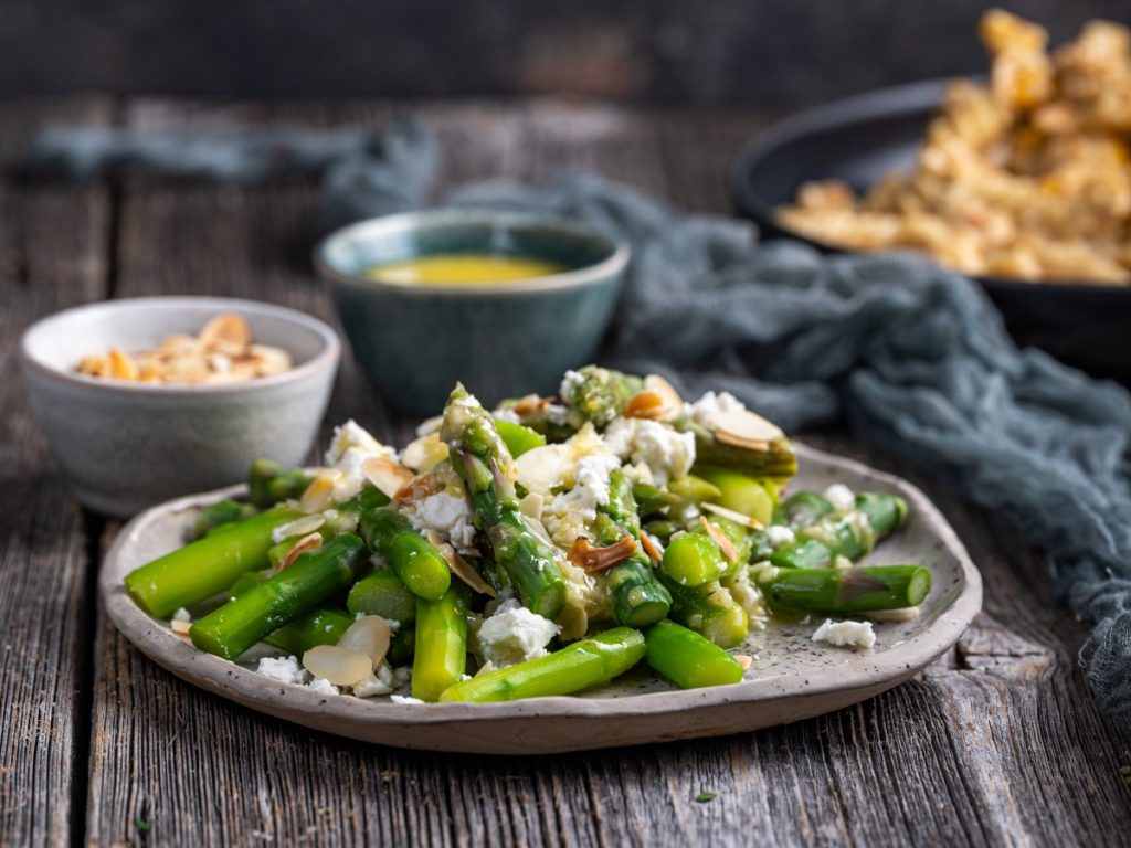 KUHINJA.COM | Špargljeva solata s kozjim sirom in mandlji ...