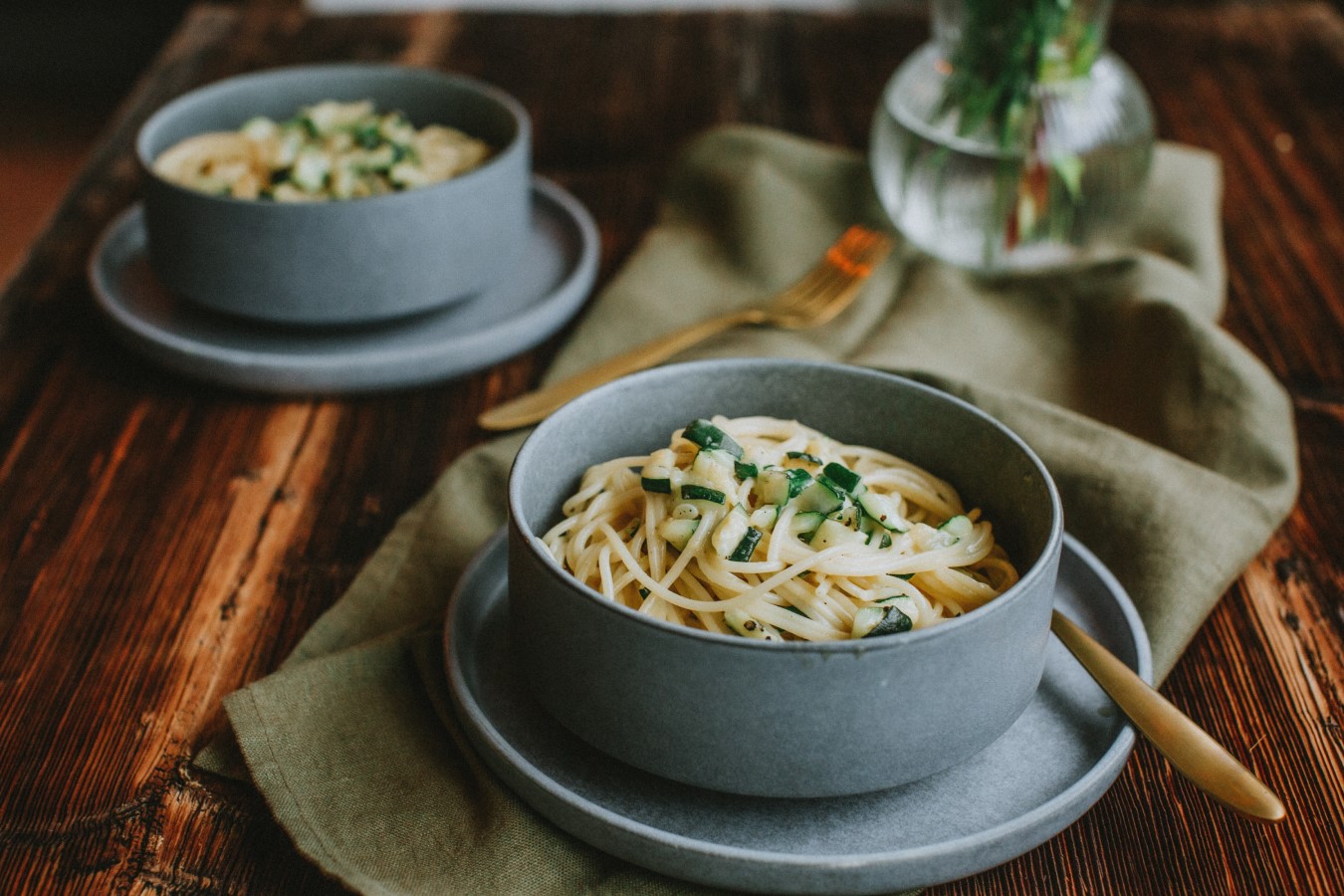 4. V zadnjih treh minutah kuhanja testenin segrejemo ponev, nanjo kanemo olje in popečemo bučke, da se malce zmehčajo.