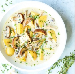 Gobova juha s krompirjem in smetano je krepka, žametna in tako okusna predstavnica priljubljenih juh. Zvrhana žlica krompirja, gob, piščančje osnove in timijana.