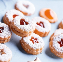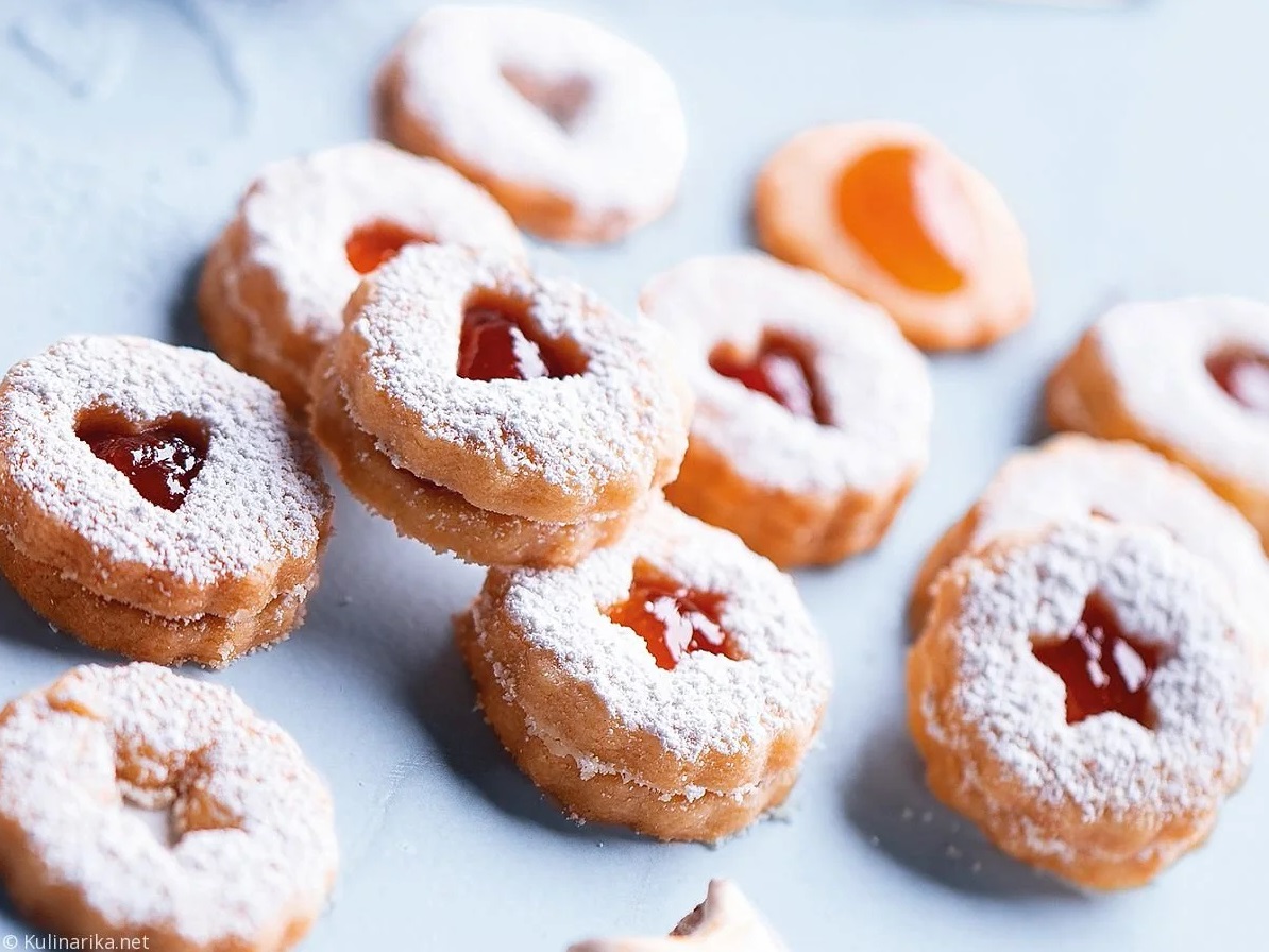 Pečico segrejemo na 170 stopinj (izberemo peko na vroč zrak). Testo na rahlo pomokani delovni površini razvaljamo na 5 mm debelo in z okroglim modelčkom za piškote (premera 4 cm) iz njega izrežemo okrogle rezine. Polovici rezin z manjšim modelčkom poljubne oblike na sredini izrežemo luknjico. Nato vse rezine položimo na pekač, obložen s papirjem za peko, in pečemo približno 10 minut, da se zlato - rjavo zapečejo.