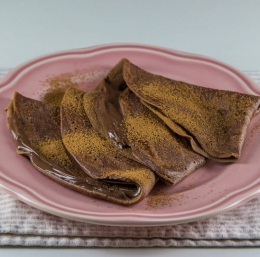 200g Pšenična bela moka 2 žlici Kakav v prahu 2 kosa Jajce - kokošje 4dl Kravje mleko - manj mastno Maslo Sol