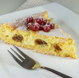 4 kosi Jajce - kokošje 600g Skuta - manj mastna 200g Kisla smetana 200g Sladkor - beli 1 kos Vanilijev sladkor Limonina lupina 50g Jedilni škrob 4 žlice Liker - mandljev 150g Rozine