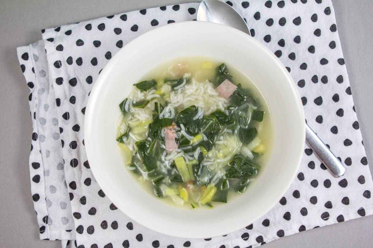500g Blitva 50g Slanina 1 kos Por 20g Maslo 1l Voda Jušna kocka 200g Riž Sol