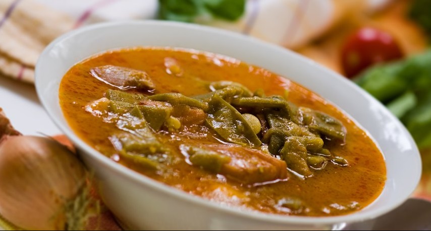 V večjem loncu segrejemo olje, na katerem med občasnim mešanjem pražimo čebulo 5 minut, da postekleni. Dodamo na kocke narezano meso. Meso na hitro, med stalnim mešanjem, popečemo z vseh strani. Dodamo paradižnik in česen, dušimo 15 minut, nato pa primešamo še stročji fižol. Zalijemo z jušno osnovo, solimo in popramo ter pokrito na zmernem ognju kuhamo še 20 do 30 minut oziroma toliko časa, da se fižol zmehča.