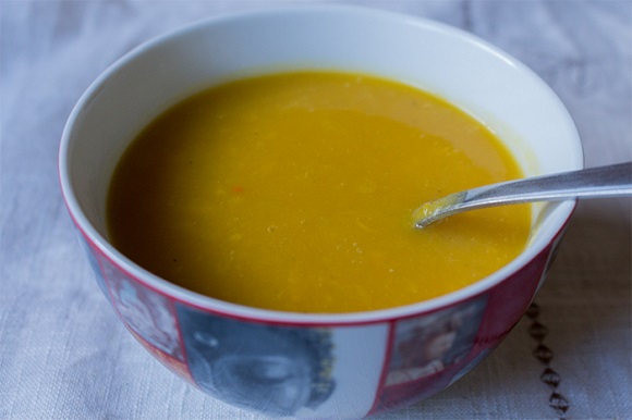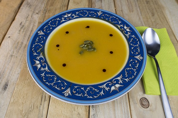Ko je buča zmehčana, jo dodamo zelenjavi in zalijemo z jušno osnovo. Kuhamo toliko časa, da je vse zmehčano. Zmiksamo s paličnim mešalnikom v kremno juhico. Po potrebi še zalijemo z jušno osnovo, če želimo bolj tekočo juho.