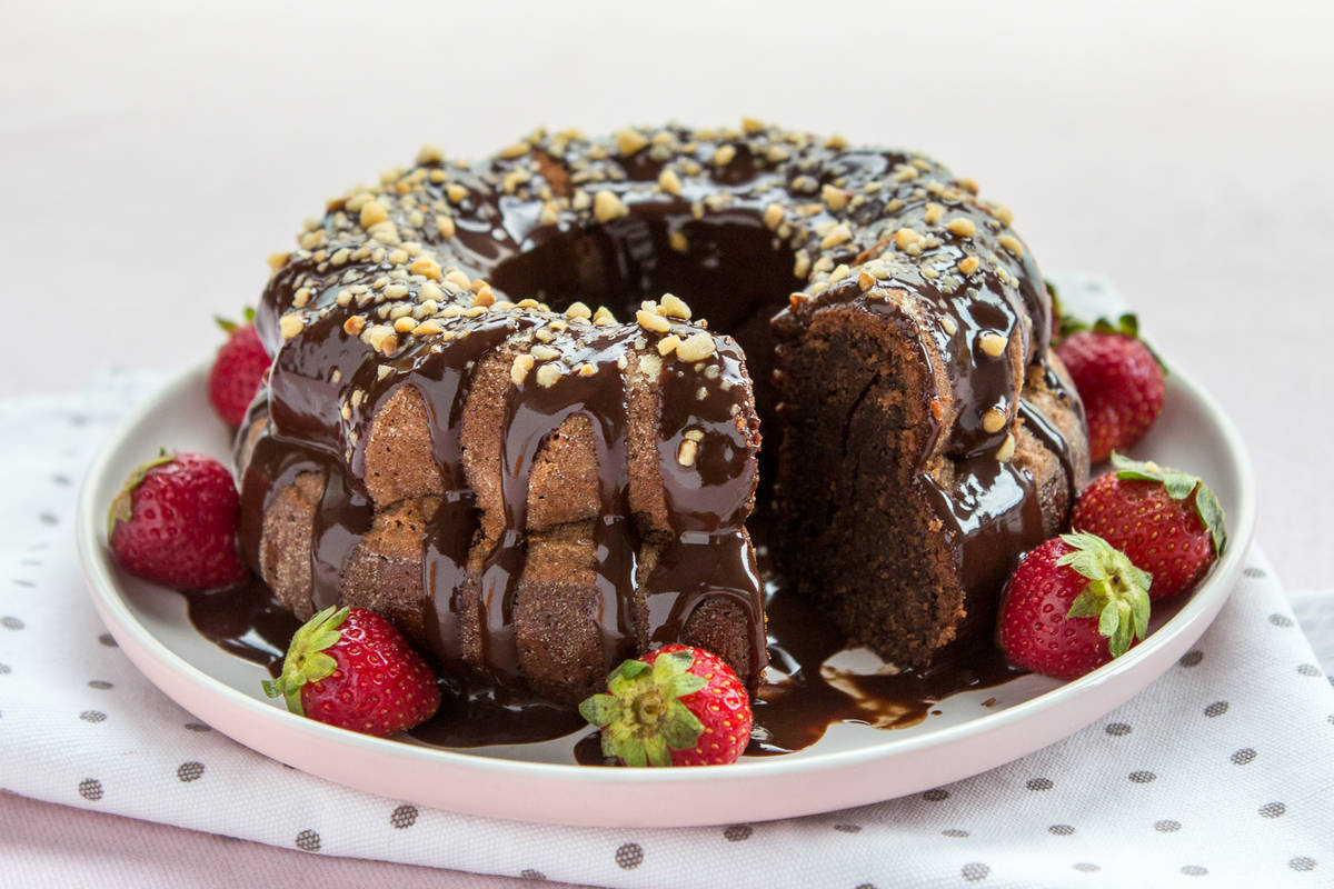 230g Maslo 40g Kakav v prahu 1 čajna žlička Sol 2dl Voda 240g Pšenična bela moka 300g Sladkor - beli 1 čajna žlička Soda bikarbona 2 kosa Jajce - kokošje 140g Jogurt - grški Vanilijev sladkor 100g Čokolada - temna 1dl Sladka smetana 1 žlica Rum
