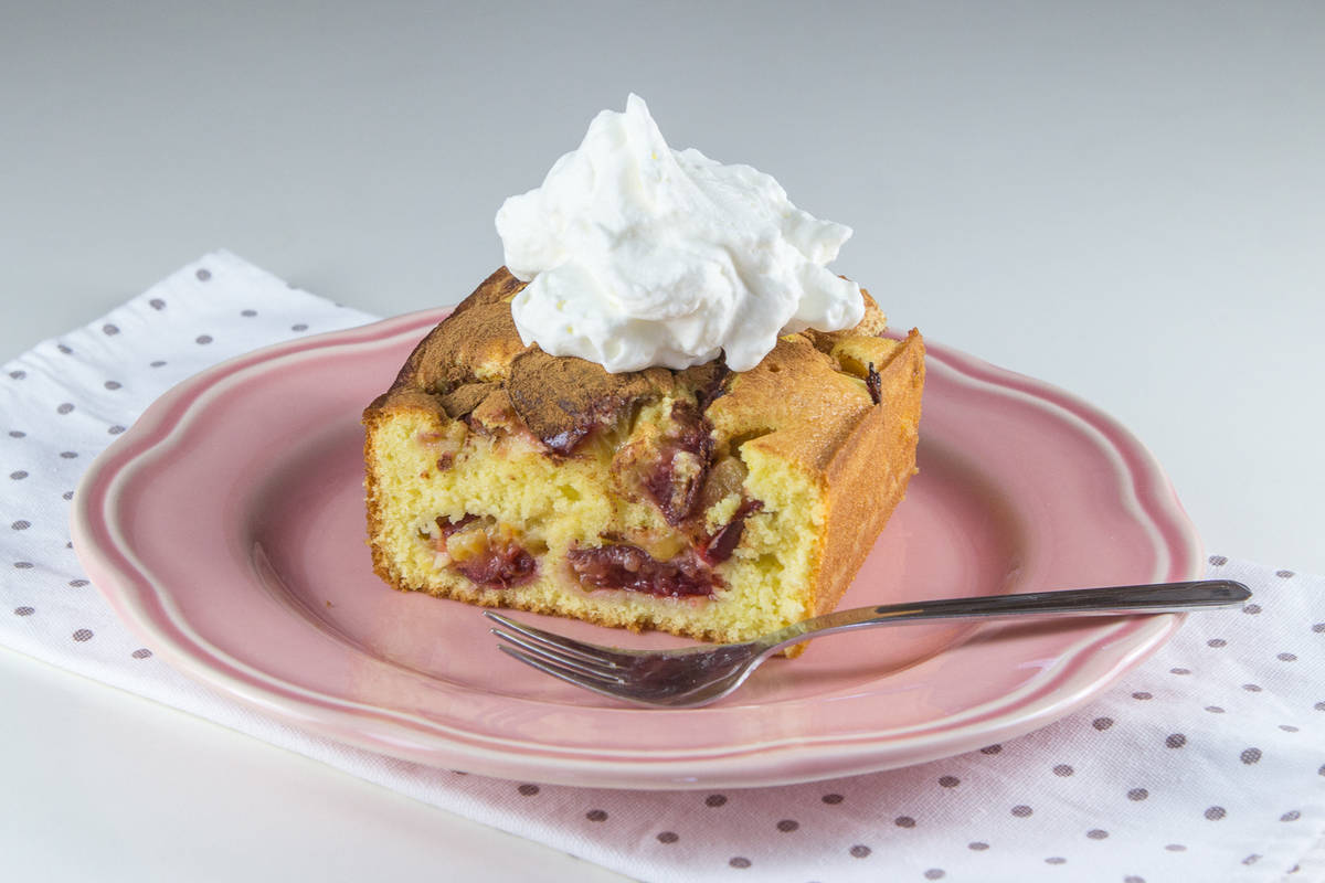 Testo obložimo s slivami in potresemo s cimetom.
