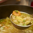 Enolončnico na koncu zgostite še z moko, pomešano z vodo. Vre naj še 10 minut.