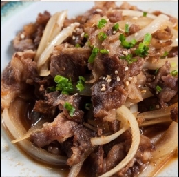 Čebulo zmeljite. Dušite jo na maslu, dokler se ne zmehča. Dodajte moko in dušite, dokler ta ne porumeni. Dodamo kis, sol, poper in govejo juho ter pustimo, da zavre. Meso narežemo na rezine in vroče postrežemo s čebulno omako.