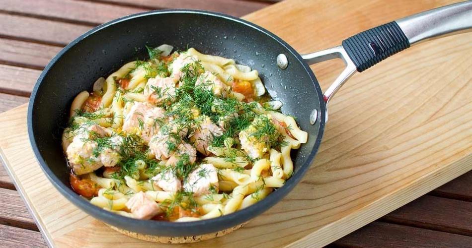 Posebej skuhamo testenine, jih odcedimo in dodamo lososovi omaki ter vse dobro premešamo.