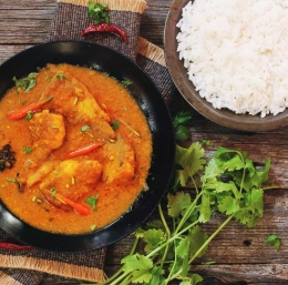 Postrežemo z rižem in okrasimo s sesekljanim koriandrom ter svežimi čiliji. Recept ni zabetoniran, variacije so zaželene.