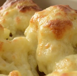 500 g cvetače 1/2 čajne žličke kumine kurkuma mleti poper 2 jajci 1 jogurt 2 žlici kisle smetane parmezan ali riban sir