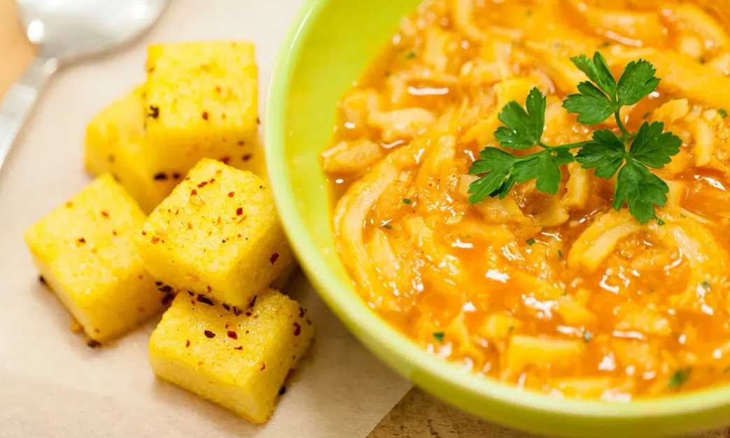 8 Počasi kuhamo 30 minut, nato dodamo še krompir in kuhamo toliko časa, da se vampi zmehčajo.