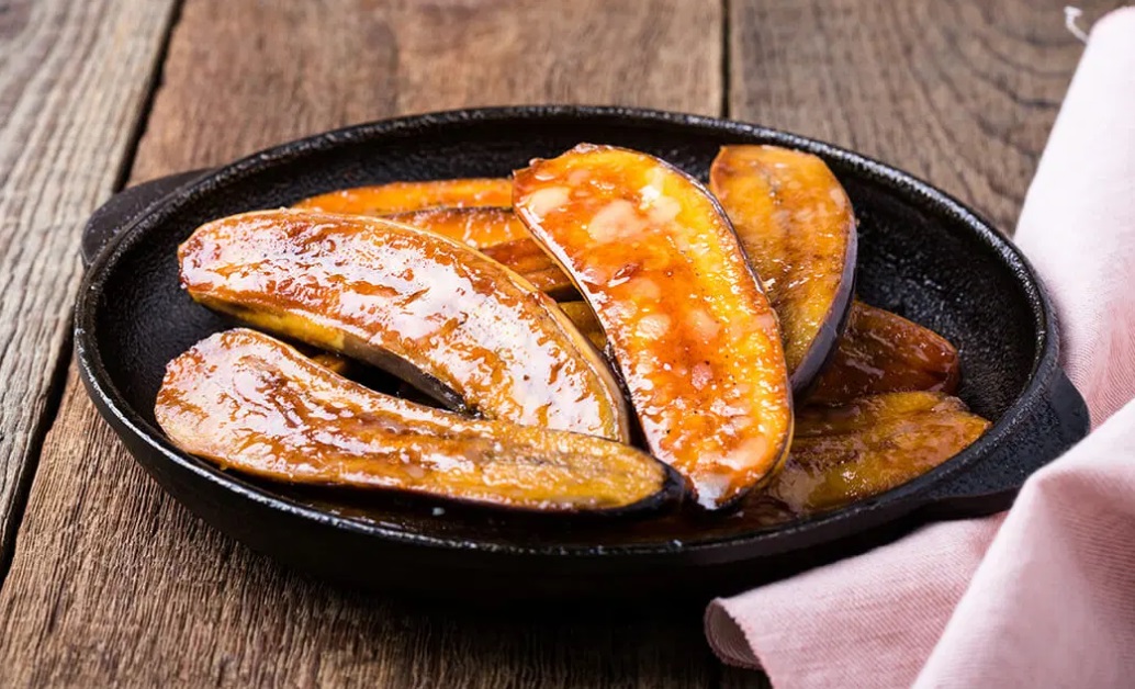 2 srednje zreli banani 2 žlici masla 2 žlici rjavega sladkorja 1 žlica limoninega soka 1/2 žličke vaniljevega ekstrakta ščepec soli