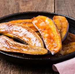 5 Ko so banane karamelizirane in postanejo mehke, jih prenesite na krožnik. Po želji jih potresite s ščepcem soli za poudarjanje okusa karamelnega preliva. Postrezite takoj, lahko pa jih tudi postavite na kuglico vaniljevega sladoleda za še bolj okusno sladico.