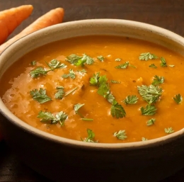 Vse skupaj spasiramo s paličnim mešalnikom ter vmešamo še sesekljan svež peteršilj. Korenčkova juha je pripravljena.
