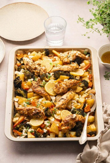 KUHINJA.COM | Pečen piščanec s krompirjem in zelenjavo na enem pekaču ...