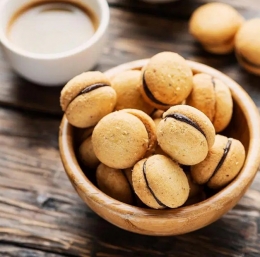 5 Mi pa nato stopimo jedilno čokolado (lahko v mikrovalovni pečici) in jo ohladimo, da postane kremasta. Z žličko ali dresirno vrečko namažemo čokolado na dno kroglice in nanjo rahlo pritisnemo drugo, da dobimo »sendvič«. Na pladnju jih pustimo toliko časa, da se čokolada strdi. In naredili smo domače damine poljubčke, prav take, kot jih lahko občudujemo v piemontskih slaščičarnah.