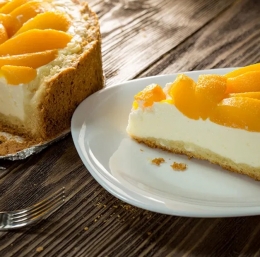 3 V posodo damo vse sestavine za nadev in jih dobro zmešamo med seboj. Nadev prelijemo v nekoliko ohlajeno testo in ga obložimo z breskvami.