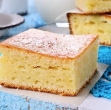 2 Penasto umešamo sladkor, vaniljev sladkor in jajci. Med mešanjem postopoma dodamo skuto, mleko, zdrob in pecilni prašek. Čisto na koncu dodamo še češnje. Naoljimo okrogel pekač premera 22 cm in vanj vlijemo dobljeno zmes ter ga damo v že prej segreto pečico na 180°C. Pečemo 45 minut.