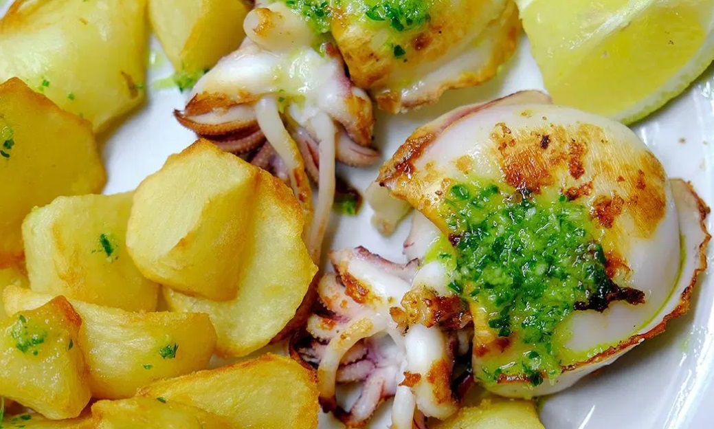 za lignje s krompirjem v pečici