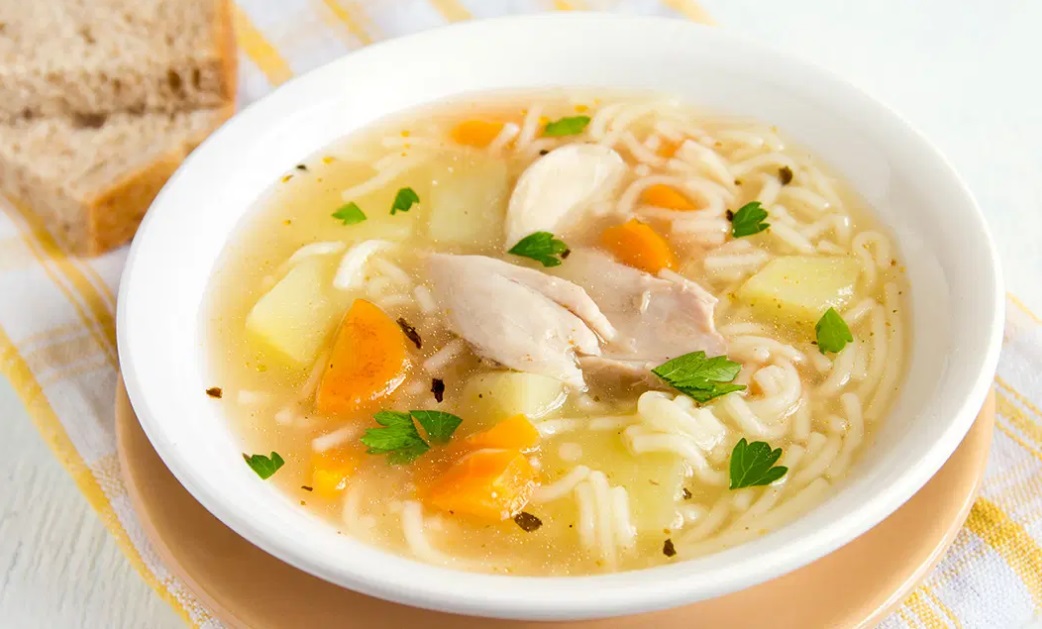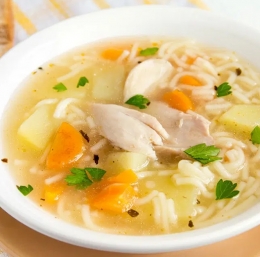 1/2 kg kokošjega (piščančjega) mesa s kostmi 2 manjši kosti sol lovorov list manjša čebula strok česna steblo zelene 2 lista zelja 3 korenčki manjši paradižnik manjši por kos kolerabe šopek peteršilja