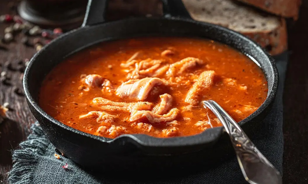 2 Kuhane vampe narežemo na rezance. Sesekljamo slanino in jo prepražimo na olju. Dodamo drobno narezano čebulo in drobtine. Mešamo, naj zadiši in se malo zmehča, zatem pa dodamo paradižnikovo mezgo in narezane vampe. Pražimo na srednjem ognju še naprej in prilivamo juho.