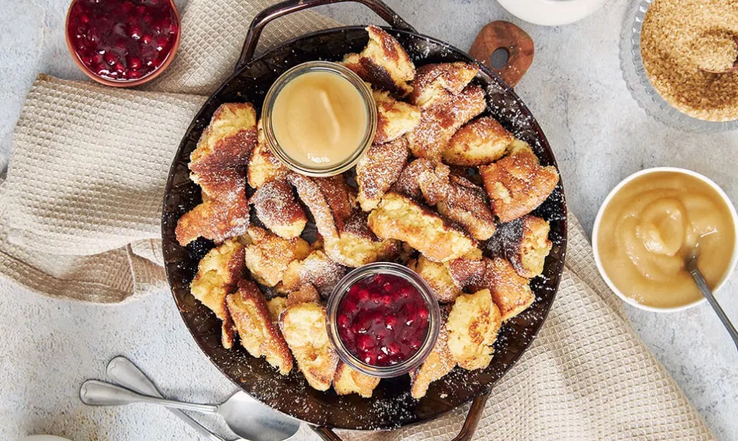 3 Testo vlijemo v ponev in ga na srednji vročini počasi pečemo približno 5 minut, da se začnejo delati mehurčki. Nato ponev prestavimo v pečico, ki smo jo ogreli na 180 stopinj Celzija, in pečemo še približno 10 minut. Ko je carski praženec zlato-rjav, je pripravljen.