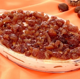 7 Iz hladilnika vzamemo torto in jo prelijemo s karameliziranimi kostanji. Postavimo nazaj v hladilnik – najbolje čez noč.