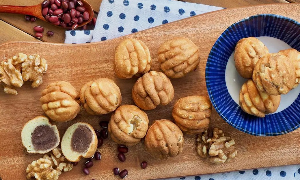 S pripravljeno maso napolnimo modelčke v obliki orehov in naredimo jamico na sredini. Pečico predgrejemo na 180 stopinj, piškote pečemo 15-17 minut, da se zlato rjavo obarvajo in zadišijo.