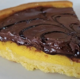 Pečico segrejemo na 180°C. Pekač za pite dobro namastimo z maslom in potresemo z moko. Na pomokani deski razvaljamo krhko testo na približno pol cm debeline, da lahko z njim pekač v celoti obložimo (tako dno kot rob). Večkrat ga prebodemo z vilicami, pokrijemo s peki papirjem in obtežimo s fižolom. Pečemo 10 minut – slepa peka.