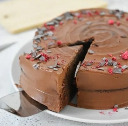 Ohlajeno torto prestavimo na krožnik, jo premažemo s čokoladno kremo in poljubno dekoriramo.