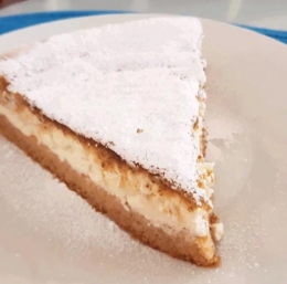 Med tem časom dobro zmiksamo vse sestavine za nadev. Z njim na hitro premažemo biskvit, ki smo ga vzeli iz pečice, čez prelijemo še preostalo maso in pečemo še 15 minut.