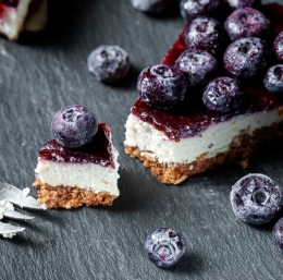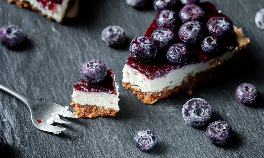 Srednja plast je sestavljena iz indijskih oreščkov, kokosovega olja (25 g), 150 g borovnic. To maso v mešalniku zmešamo ter prekrijemo spodnjo plast.